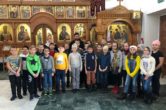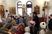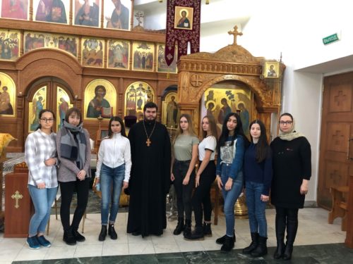 Во время экскурсии отец Фёдор рассказал об архитектуре и устройстве храма, символике храмовой архитектуры, богослужебных принадлежностях и священническом облачении.