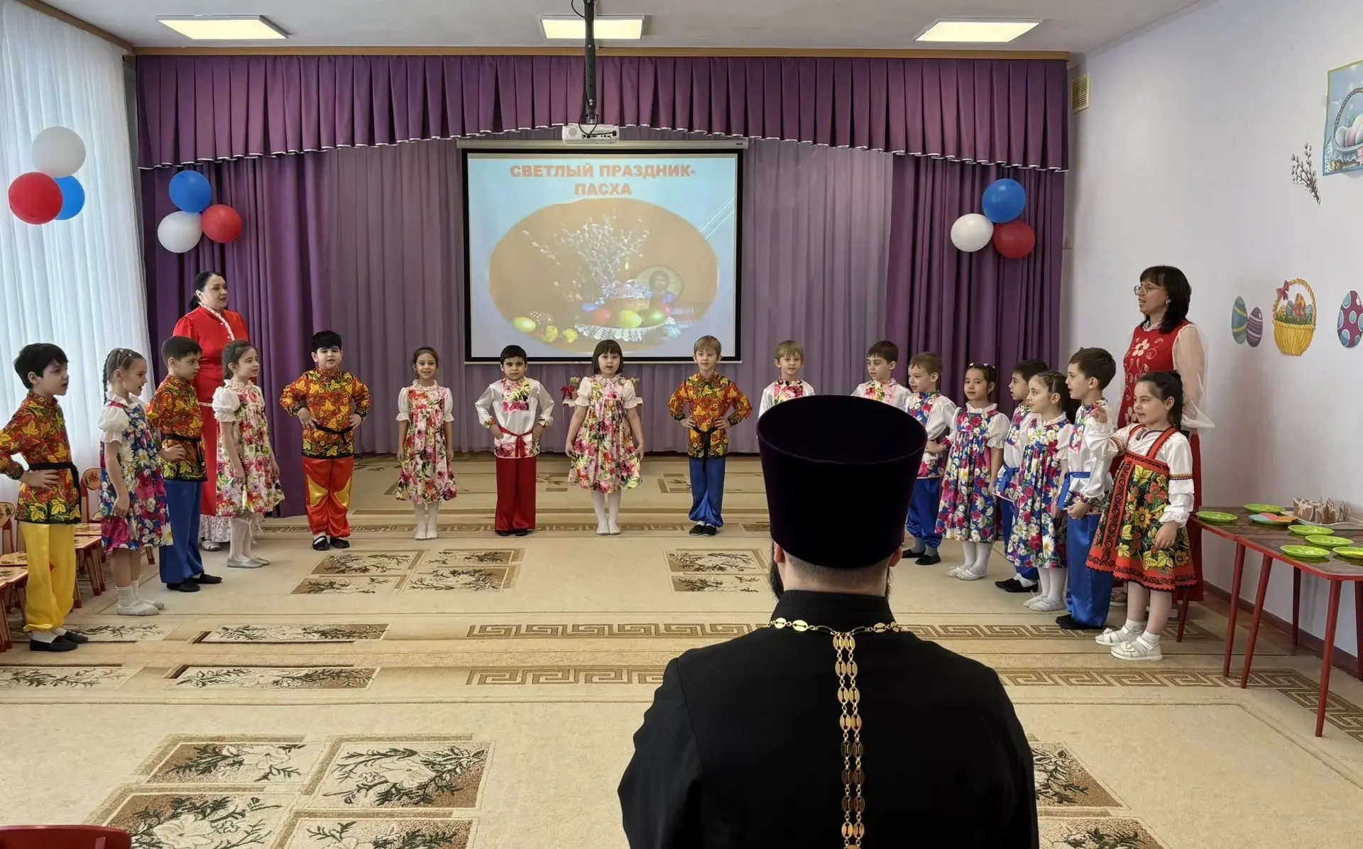 Иерей Илия Никифоров, настоятель храма в честь Святаго Праведного Иоанна Кронштадтского провел встречу на тему «Светлая Пасха-Великая радость» с воспитанниками МАДОУ ДС №12 г. Радужный. В ходе встречи священник рассказал детям о смысле праздника и истории его празднования, а также увидел концерт, подготовленный воспитанниками по случаю праздника.