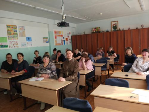 19 февраля иерей Илия Балабонкин поучаствовал во встрече с педагогами школы №2 г.Мегиона, посвященную православным традициям Поста и Пасхи. Батюшка рассказал о важности самосовершенствования и дел милосердия в православной традиции.[portfolio_slideshow]
