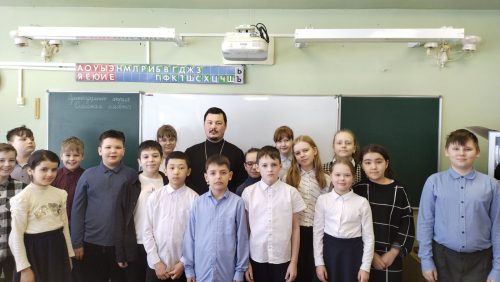 11 апреля 2023 года священник храма в честь святого великомученика Георгия Победоносца г.Сургута иерей Рафаил Хасанов провёл беседу с учениками 4 «В» класса Лицея № 3 на тему: «Спорт со стороны православия».