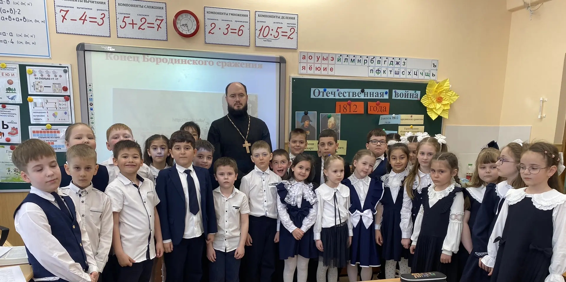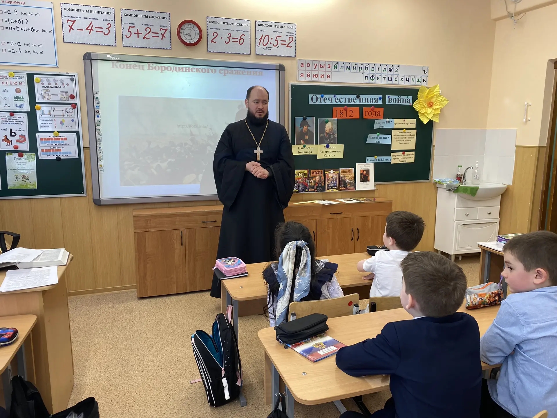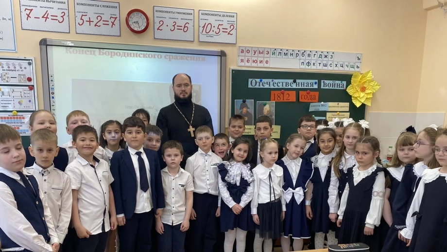 Иерей Илия Никифоров, настоятель храма в честь Святаго Праведного Иоанна Кронштадтского г. Радужный принял участие в открытом уроке 1-го класса школы № 4  . Ученикам рассказали о важности отечественной войны и победе Российском Империи над объединёнными европейскими войсками, под командованием Наполеона Бонапарта.