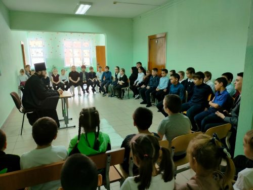 8 февраля настоятель храма Покрова Божией Матери посетил посёлок Аган, где провел 3 встречи со школьниками, а также побеседовал с учителем. Благодаря тому что беседы были разделены по звеньям, обсудили насущные вопросы, и основные проблемы подрастающего поколения, для каждого звена.