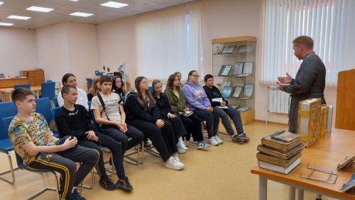 24 мая в день памяти святых равноапостольных Кирилла и Мефодия — в День славянской письменности и культуры иерей Георгий Болотов посетил Нижневартовскую районную библиотеку где встретился с учащимися Средней школы/1. Священник рассказал ребятам о празднике и познакомил с Богослужебным Евангелием и другими духовными книгами.