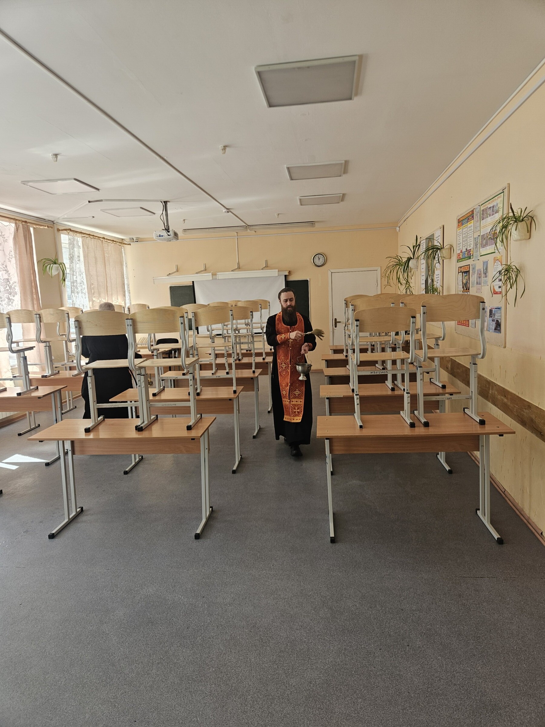 Настоятель храма Преподобного Сергия Радонежского иерей Игорь Логвин совершил чин освящения МБОУ СОШ №3 г.Ханты-Мансийска. Священник окропил святой водой учебные классы, коридоры и актовый зал, прочитав молитвы о даровании мудрости педагогам и прилежания ученикам.