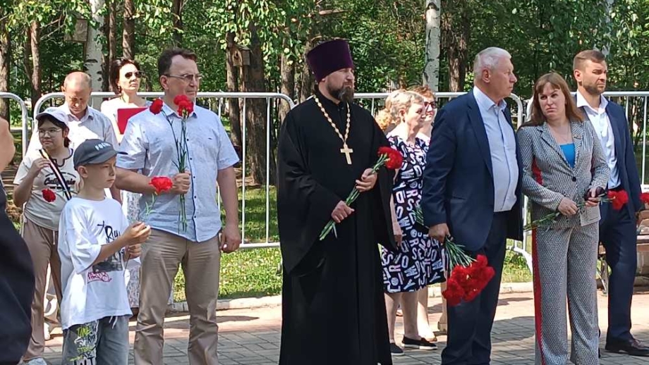 Протоиерей Георгий Макарцов выступил с приветственным словом и возложил цветы к памятнику «Верным сынам Отечества».