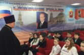 21 и 22 февраля 2019 года благочинный Ханты-Мансийского благочиния протоиерей Сергий Кравцов встретился с учащимися 5-6 и 8-9 классов МОУ СОШ №6 г. Ханты-Мансийска в рамках месячника военно-патриотического воспитания молодёжи и побеседовал с ними на тему: «Воспитание молодежи на примере героев-защитников разных периодов истории нашего Отечества».