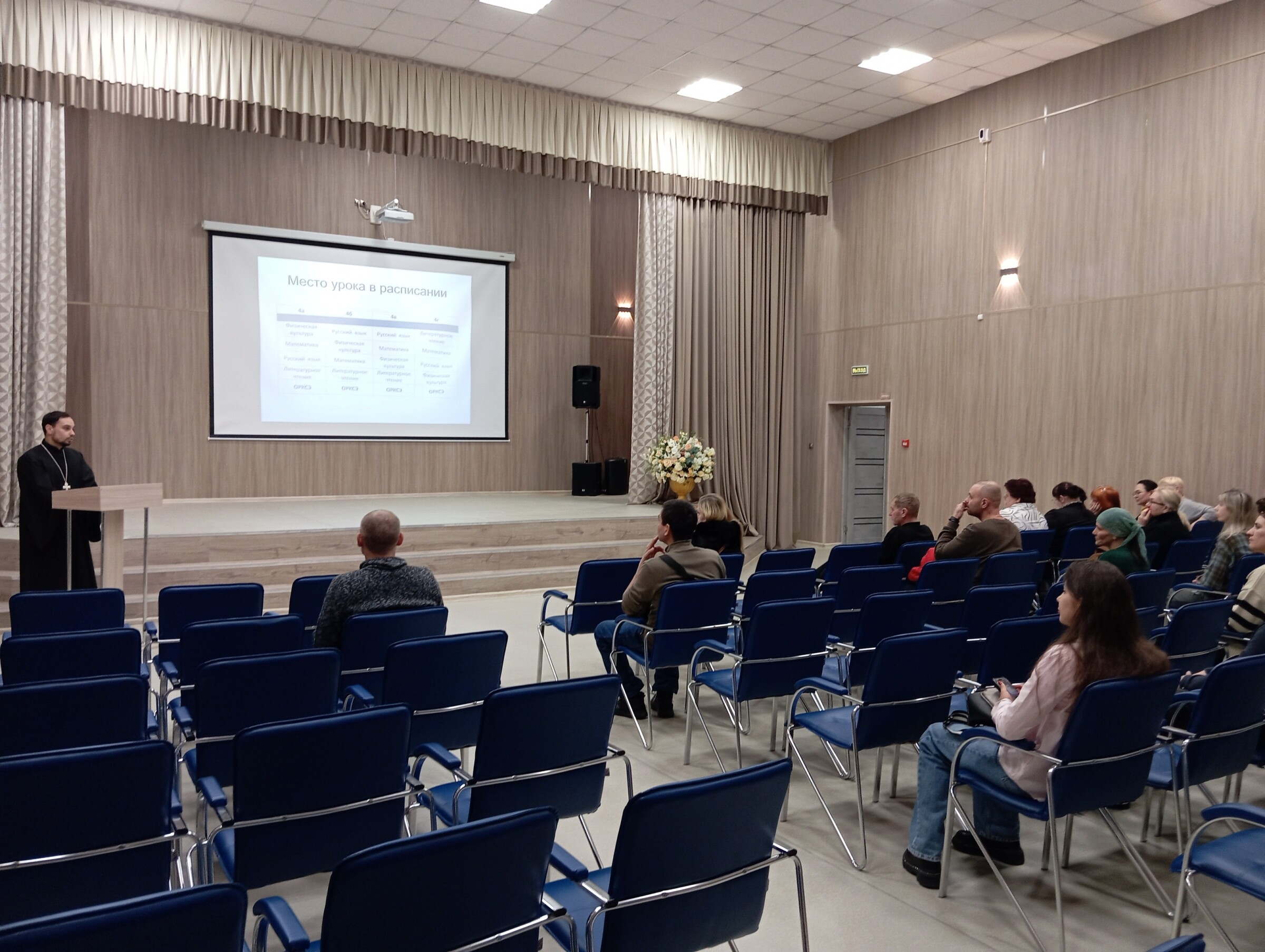 Священнослужитель храма целителя Пантелеимона провел встречу с родителями по выбору модуля ОРКиСЭ