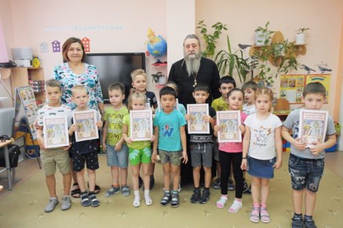 Ребята прилежно слушали священнослужителя, с готовностью отвечали на его вопросы. Отец Мирослав похвалил маленьких слушателей за внимательность, пожелал детям и воспитателю помощи Божией в обучении и воспитании, старания и успехов в делах.