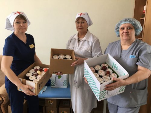 18 апреля 2023 года сёстры милосердия при Приходе храма в честь свт.Луки (Войно-Ясенецкого) города Нефтеюганска, по благословению иерея Олега Саватеева поздравили с праздником Пасхи Христовой пациентов отделений БУ «НОКБ им.В.И.Яцкив». Подарили Куличи, крашеные яйца, конфеты.