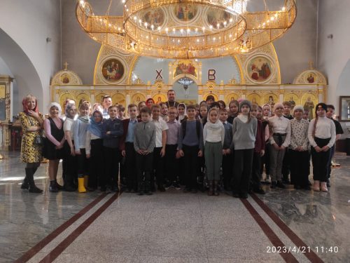 В четверг Светлой седмицы ученики Лицея №1 в количестве 80 человек, и в пятницу Светлой седмицы учащиеся 3-х и 4-х классов МБОУ СШ №6 города Сургута посетили храм в честь святых мучениц Веры, Надежды, Любови и матери их Софии. В храме ребят встретил клирик Прихода протоиерей Павел Придатченко и директор воскресной школы Суботьялова Д.М. Отец Павел провёл беседу с ребятами о Светлом Христовом Воскресении. Далее лицеисты поставили свечи, воженные от Благодатного огня, и были приглашены в актовый зал для просмотра мультфильма «Небесная Радость». Ребята и взрослые остались под большим впечатлением от посещения храма в светлый праздник, им была предоставлена возможность позвонить в колокольчики имитированной детской колокольни.