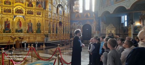 На экскурсии, которую провел клирик собора Преображения Господня г. Сургута иерей отец Виталий Юдин, дети познакомились с историей появления первого храма в Сургуте и узнали о том, где был расположен до разрушения в годы советской власти Свято-Троицкий Храм. Затем отец Виталий рассказал об особенностях устройства Собора и храмов в целом, о расположении икон на иконостасе и о некоторых святых. Так же, дети посетили конференц-зал, в котором дети задавали вопросы отцу Виталию о вере, о Господе Иисусе Христе, о Православии.
