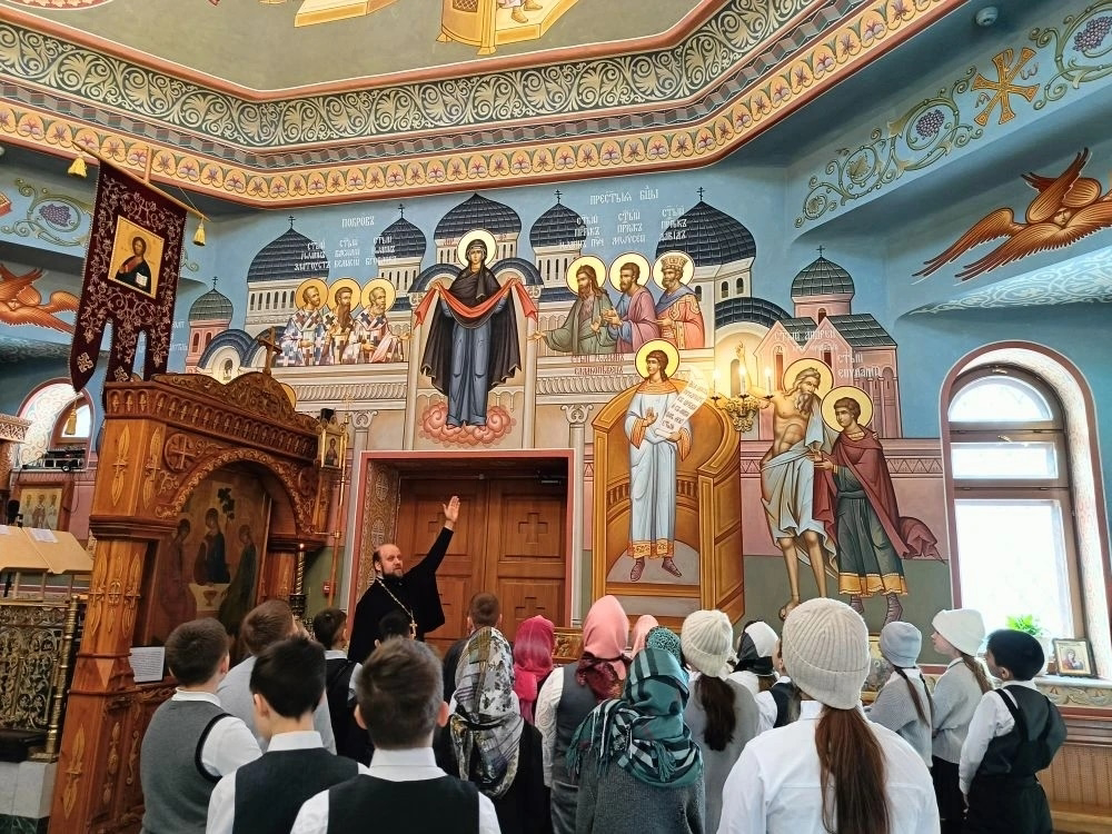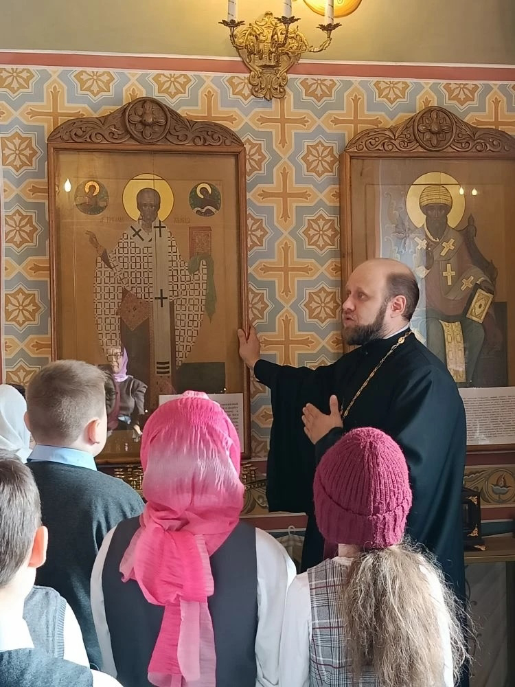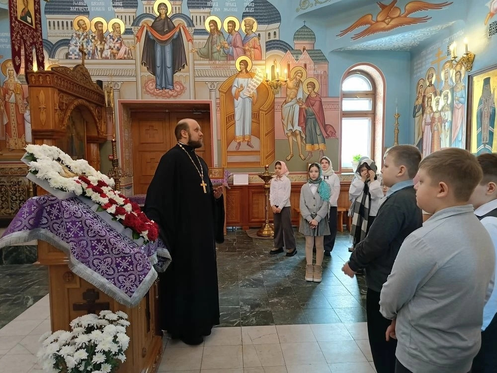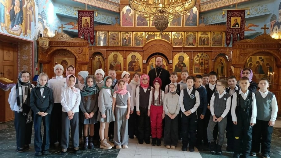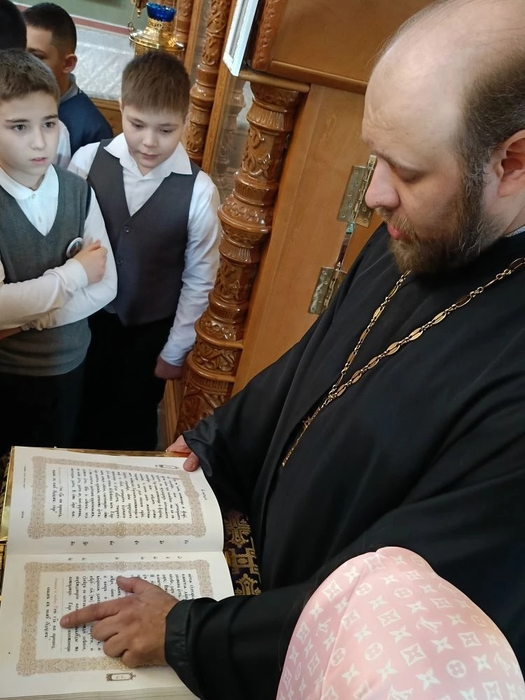 Настоятель храма иерей Виталий Габак, радушно встретил школьников и провел для них увлекательную экскурсию. Ребята узнали об устройстве православного храма, истории иконостаса и главных святынях.