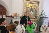 В рамках сотрудничества с МБОУ СОШ №6 по программе ОРКиСЭ учащиеся, в сопровождении учителя начальных классов Паталахи Натальи Николаевны, посетили приход храма в честь иконы Божией Матери «Всех скорбящих Радость». Нынешняя встреча была посвящена празднику Святой Троицы. У входа в храм святых мучениц Веры, Надежды, Любови и матери их Софии детей встретила директор воскресной школы Суботьялова Дина Маратовна, которая рассказала об истории храмового комплекса, правилах поведения на территории храма. Клирик храма протоиерей Павел Придатченко рассказал о празднике и познакомил ребят со списком иконы Андрея Рублева «Троица». В закрепление темы был продемонстрирован документальный видеосюжет об иконописце Андрее Рублёве. Также ребята посмотрели мультфильм о Василии Блаженном.