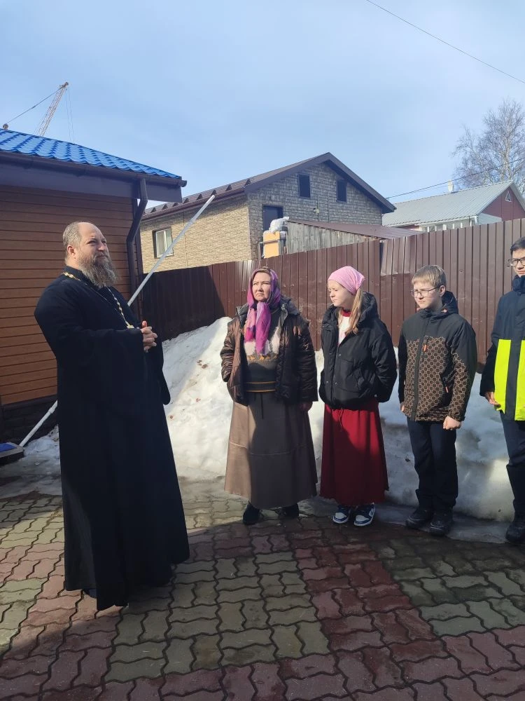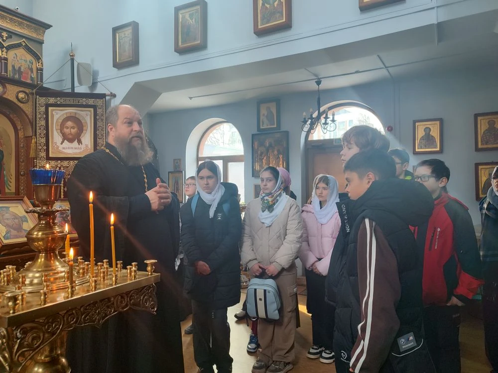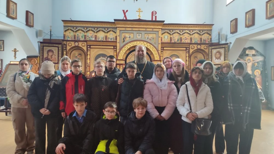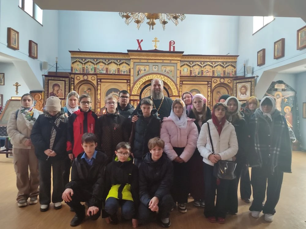 27 марта 2026 года в рамках проведения фестиваля «Семья» ученики 7А класса МБОУ СОШ №5 города Ханты-Мансийска посетили Знаменский храм. Всего было 17 детей и два учителя. Гостей встретил и провёл экскурсию иерей Тарасий Борозенец.
