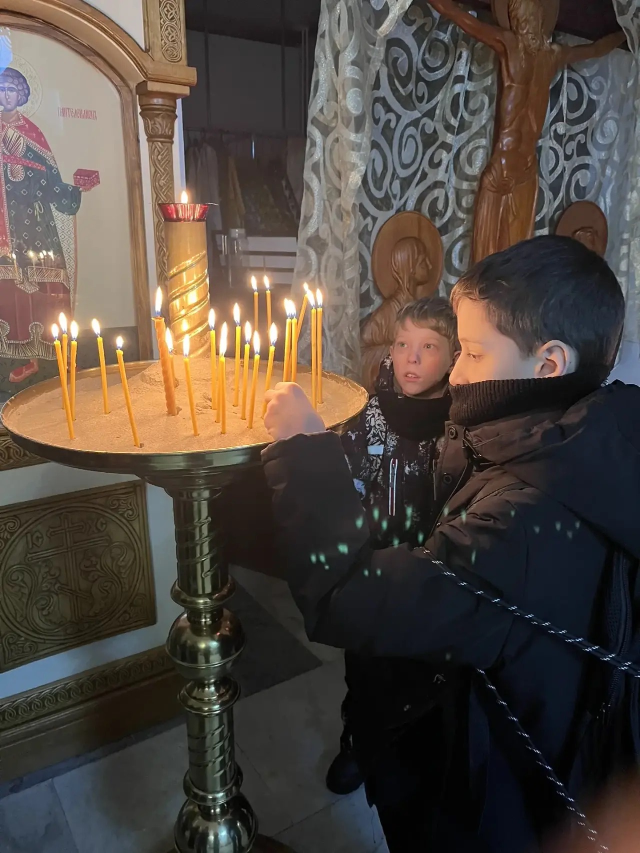 По окончании урока отец Евгений провел для ребят экскурсию в храме и рассказал о его устройстве.