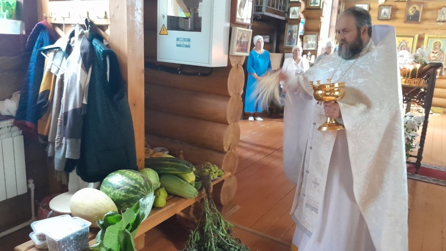 По окончании Литургии иеромонах Роман освятил плоды нового урожая, после чего обратился  к верующим с проповедью на тему евангельского зачала, а также поздравил прихожан с Преображением Господним.
