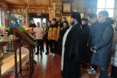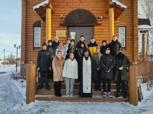 На богослужении присутствовали ученики 9-ого класса Средней общеобразовательной школы д. Шапша в сопровождении заместителя директора по воспитательной работе С.Л. Ивановой и советников директора по воспитательной работе А.А. Абрамова и А.С. Сутарминой.