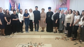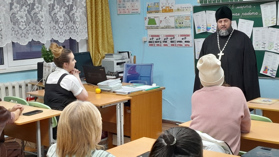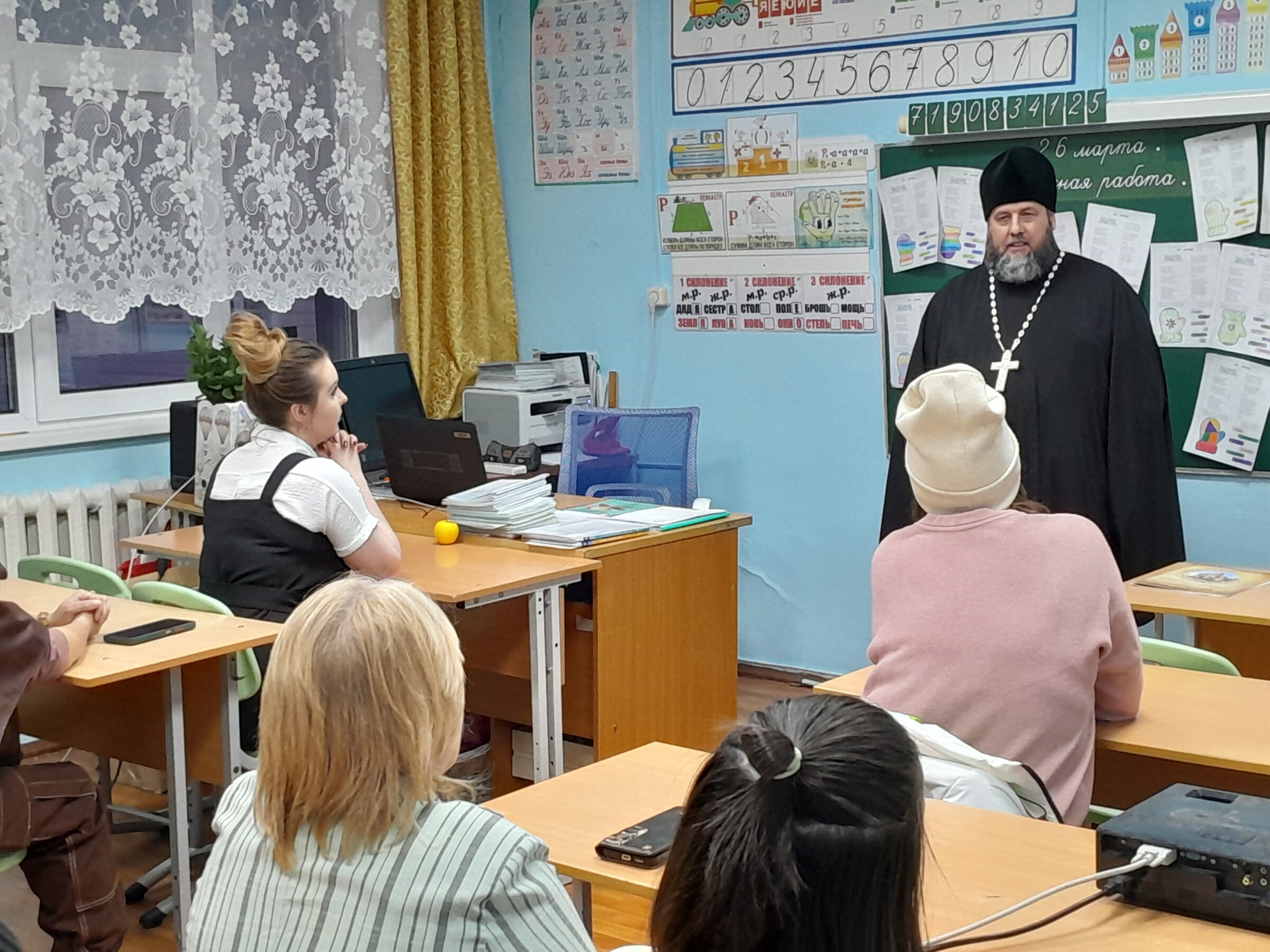 В конце встречи было предоставлено слово настоятелю храма в честь святого преподобного Евфимия Великого д. Шапша Ханты-Мансийского района иеромонаху Роману (Киселеву), который более подробного представил модуль курса «Основы православной культуры».
