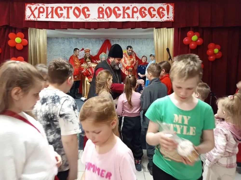 Всем детям и участникам спектакля были розданы пасхальные куличи.