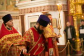 После сугубой ектении митрополит Павел вознес молитву о скорейшем восстановлении мира. По благословению Святейшего Патриарха Московского и всея Руси Кирилла сугубая молитва совершается во всех храмах Русской Православной Церкви.