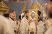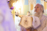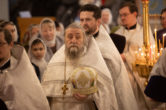 На сугубой ектении были вознесены особые прошения, секретарь Ханты-Мансийской епархии игумен Антоний (Кирпичев) прочитал молитву о Святой Руси.
