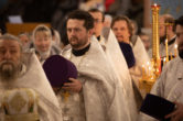 Его Высокопреосвященству сослужили: благочинный Нижневартовского городского благочиния протоиерей Сергий Шевченко, секретарь Ханты-Мансийской епархии игумен Антоний (Кирпичев), духовенство благочиния. Диаконский чин возглавил диакон Даниил Матвеев.