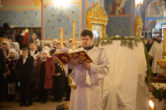 «Дорогие отцы, братья и сёстры, позвольте от сердца, от души поздравить всех вас с праздником Рождества Господа Нашего Иисуса Христа, с престольным днём этого храма, ибо он посвящён Рождеству Христову! Человечество ожидало более пяти тысяч лет пришествия в мир Христа Спасителя, для нас это стало привычным, из года в год мы готовимся к этому празднику и мы — в лучшем положении, нежели человек Ветхого Завета, ожидающий пришествия в мир Христа долгое время. Господь возлюбил так человека, что послал Единородного Сына Своего, дабы Он избавил от греха род человеческий. Вот самая главная миссия Христа Спасителя, ибо ангелы воспевали, когда родился Богомладенец: «Слава в вышних Богу, и на Земли мир, в человецех — благоволение». Какие мудрые слова! Господь принёс на Землю мир, а взамен этого мира получает благоволение Божие. И мы с вами прекрасно знаем: там, где мир- там любовь, а любовь есть Господь — так говорит Иоанн Богослов. А там, где нет любви, мира нет и Бога- там война.Мы с вами являемся свидетелями этому, когда в ценность превращены грех, разврат и тому подобное. Нам нужно научиться стяжать тот дух мирен, о котором говорит преподобный Серафим Саровский, чтобы не только самому спастись, но и спасались бы вокруг нас тысячи. Научиться должно жить в мире со всеми, прежде всего со своими родными, ибо мы не можем не ругаться в своих семьях, а что же говорить о других людях? Мир и благоволение Божие — если ты будешь жить со всеми в мире, то будет с тобой и благоволение Божие — так выражается суть правильной жизни человека.