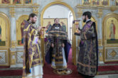 Его Высокопреосвященству сослужили: благочинный Нижневартовского благочиния, протоиерей Сергий Шевченко; заведующий епархиальной канцелярией, иерей Сергий Нагорный; настоятель храма, иерей Олег Гордеев; иерей Алексий Сучков, иерей Владимир Макаров. Диаконский чин возглавил диакон Даниил Матвеев.