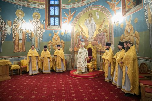 По окончании Богослужения митрополит Павел обратился к собравшимся: «Дорогие отцы, братья и сестры! Всех сердечно благодарю за общие молитвы и поздравляю с праздником памяти святого апостола Андрея Первозванного. Милостью Божией 4 дня назад я находился на Афоне и посетил Андреевский скит нашего Свято-Пантелеимонова монастыря, ныне принадлежащий Константинопольскому патриархату. Этот скит подобен огромному монастырю — большой Кафедральный Собор, не меньше, чем наш, Воскресенский, отдельное здание семинарии, братский корпус с храмом, в котором находится честная глава Апостола Андрея, к которой Господь милостью Божией сподобил приложиться и помолиться.