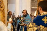 Его Высокопреосвященству сослужили: секретарь Ханты-Мансийской епархии игумен Антоний (Кирпичев), духовник епархии иеромонах Владимир (Ванюков), протоиерей Сергей Глухарев, иерей Дионисий Безносов. Диаконский чин возглавил диакон Даниил Матвеев.