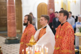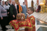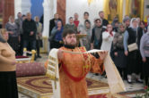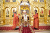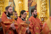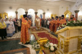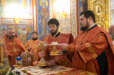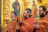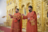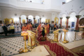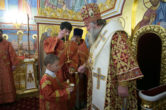 Его Высокопреосвященству сослужили: благочинный Сургутского благочиния, протоиерей Антоний Исаков; благочинный Нижневартовского благочиния, протоиерей Сергий Шевченко; заведующий епархиальной канцелярией, иерей Сергий Нагорный; ключарь храма, иерей Иаков Мусс; иерей Виталий Габак, иерей Владимир Василенко, иерей Феодор Максимов, иерей Александр Сысоев. Диаконский чин возглавил диакон Даниил Матвеев.
