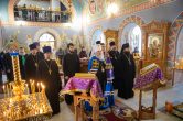 Его Высокопреосвященству сослужили: благочинный Нижневартовского городского благочиния протоиерей Сергий Шевченко, секретарь Ханты-Мансийской епархии игумен Антоний (Кирпичев), настоятель храма иерей Константин Глухарев, протоиерей Валерий Басакин, протоиерей Владимир Захаров, иерей Олег Гордеев. Диаконский чин возглавил диакон Даниил Матвеев.
