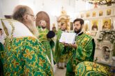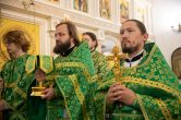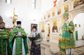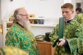 Его Высокопреосвященству сослужили: секретарь Ханты-Мансийской епархии игумен Антоний (Кирпичев), благочинный Няганского благочиния протоиерей Владимир Шишков, секретарь Югорской епархии иерей Николай Щерба, иерей Павел Кашин. Диаконский чин возглавил диакон Даниил Матвеев.
