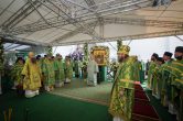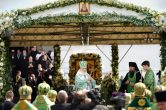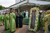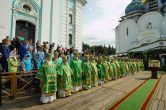 Торжественное богослужение совершалось перед чтимой иконой преподобного Сергия Радонежского. Для совершения праздничных всенощного бдения и Божественной литургии на Соборной площади был устроен помост, а перед Успенским собором Лавры — престол под сенью.