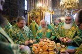 По окончании Литургии Святейший Патриарх Кирилл, члены Священного Синода и иерархи, прибывшие на праздник в Лавру, совершили молебен Игумену земли Русской.