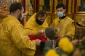 На сугубой ектении были вознесены молитвенные прошения в связи с угрозой распространения коронавирусной инфекции.