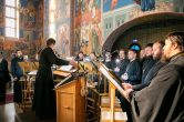 Проповедь перед причастием произнес настоятель храма честь пророка Илии г. Ханты-Мансийска иерей Евгений Кизин.