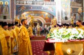 Всех ещё раз поздравляю с этим праздником, с небесным покровителем нашего края, благодарю духовенство двух епархий нашей митрополии, что прибыли сегодня разделить радость праздника святительского дня. Желаю всем милости, помощи Божией и конечно же святительского путеводительства этого края, ибо святитель Нектарий здесь служил, здесь был прославлен и сегодня он с нами присутствует частью своих святых мощей. Всех вас с праздником, мои дорогие, храни всех Господь!»