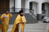 «Дорогие отцы, братья и сестры, позвольте всех сердечно поздравить с праздником великого равноапостольного князя Владимира- Крестителя Руси, память которого мы сегодня отмечаем. Посмотрев на историю, на то, какой в то время была наша Русь, мы видим пребывание в язычестве, междоусобные войны, многоженство. Будучи язычником, князь Владимир усомнился в вере языческой и начал искать истинную веру. Посылал послов, приглашал разных проповедников, и последние посланники, побывавшие в Византии, в храме Святой Софии, сказали, что не знали, где были- на небе или на земле. То торжественное Богослужение, прекрасное ритмическое пение, настолько вдохновило послов, тех мудрых мужей, способных понять и оценить то, что они лицезрели. Князь просит руки дочери греческого князя Анны. Византия отказывает Владимиру, ибо он не христианин. Не желая подчиниться грекам, он пошел на них войной, и завоевав Херсонес, позвал туда будущую жену.