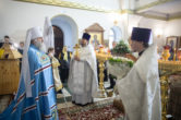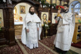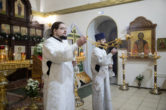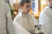 Его Высокопреосвященству сослужили: благочинный Сургутского районного благочиния протоиерей Владислав Бронников, настоятель храма протоиерей Димитрий Глухарев, секретарь Ханты-Мансийской епархии игумен Антоний (Кирпичев). Диаконский чин возглавил диакон Даниил Матвеев.