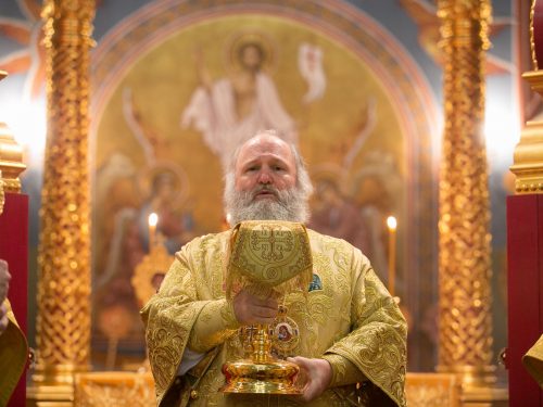 По окончании Богослужения митрополит Павел обратился к собравшимся: » Всех вас, мои дорогие, благодарю за общие молитвы, и поздравляю с праздником памяти святителя Спиридона Тримифунтского, великого угодника Божия, современника святителя Николая, архиепископа Мирликийского Чудотворца. Нетленные мощи святителя Спиридона пребывают на острове Корфу, и по сей день они имеют температуру тела. В киоте иконы, как мы видим, находится башмачок святителя. У мощей их периодически меняют, потому что через определенное время тапочки изнашиваются. Это говорит о том, что святитель, находясь святыми мощами в гробнице, в это время приходит на помощь всем нуждающимся.