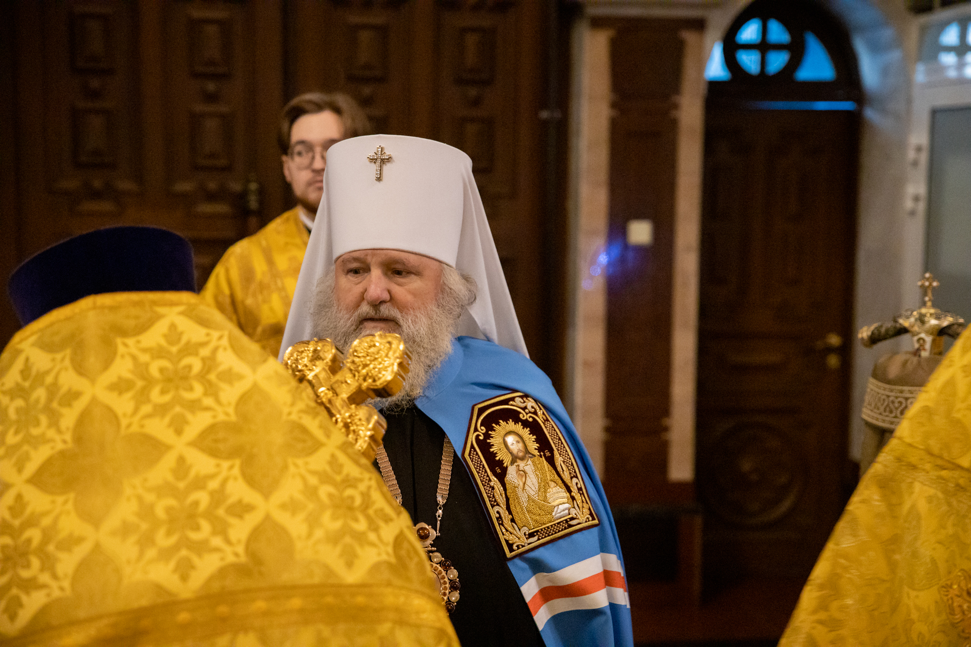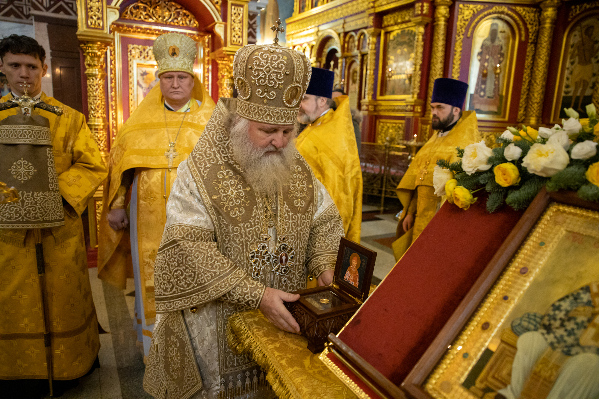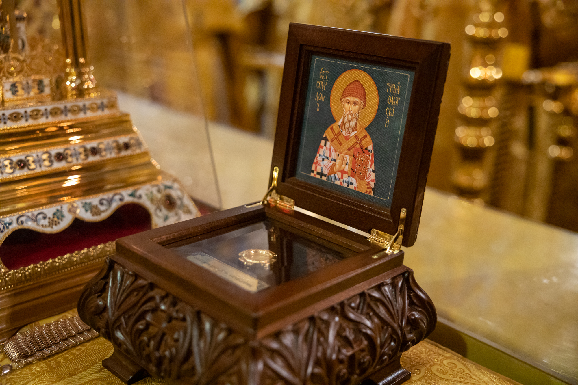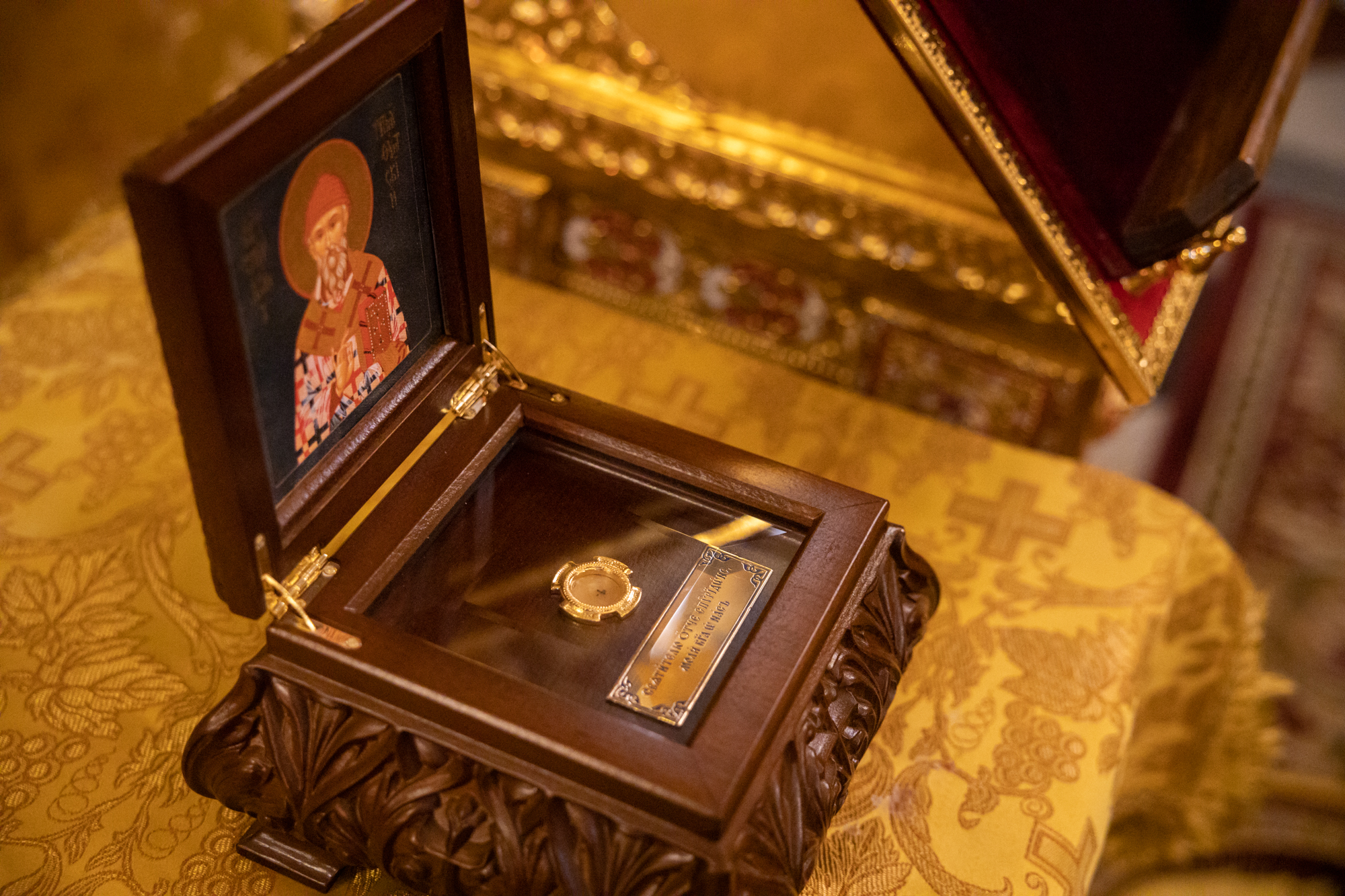 По окончании богослужения состоялось торжественное изнесение ковчега с частицей мощей святителя Спиридона, епископа Тримифунтского из алтаря. Митрополит Павел благословил верующих ковчегом со святынями, после чего он был установлен на середине храма. Владыка и духовенство совершили у ковчега славление святому.