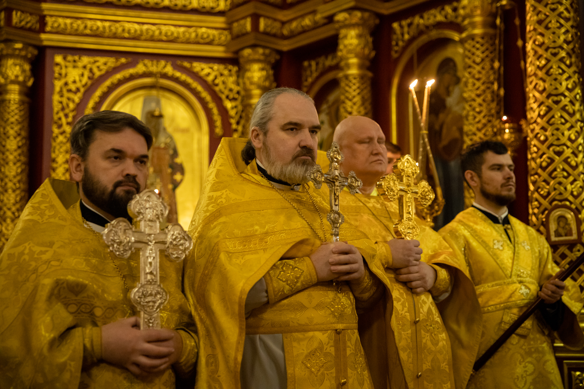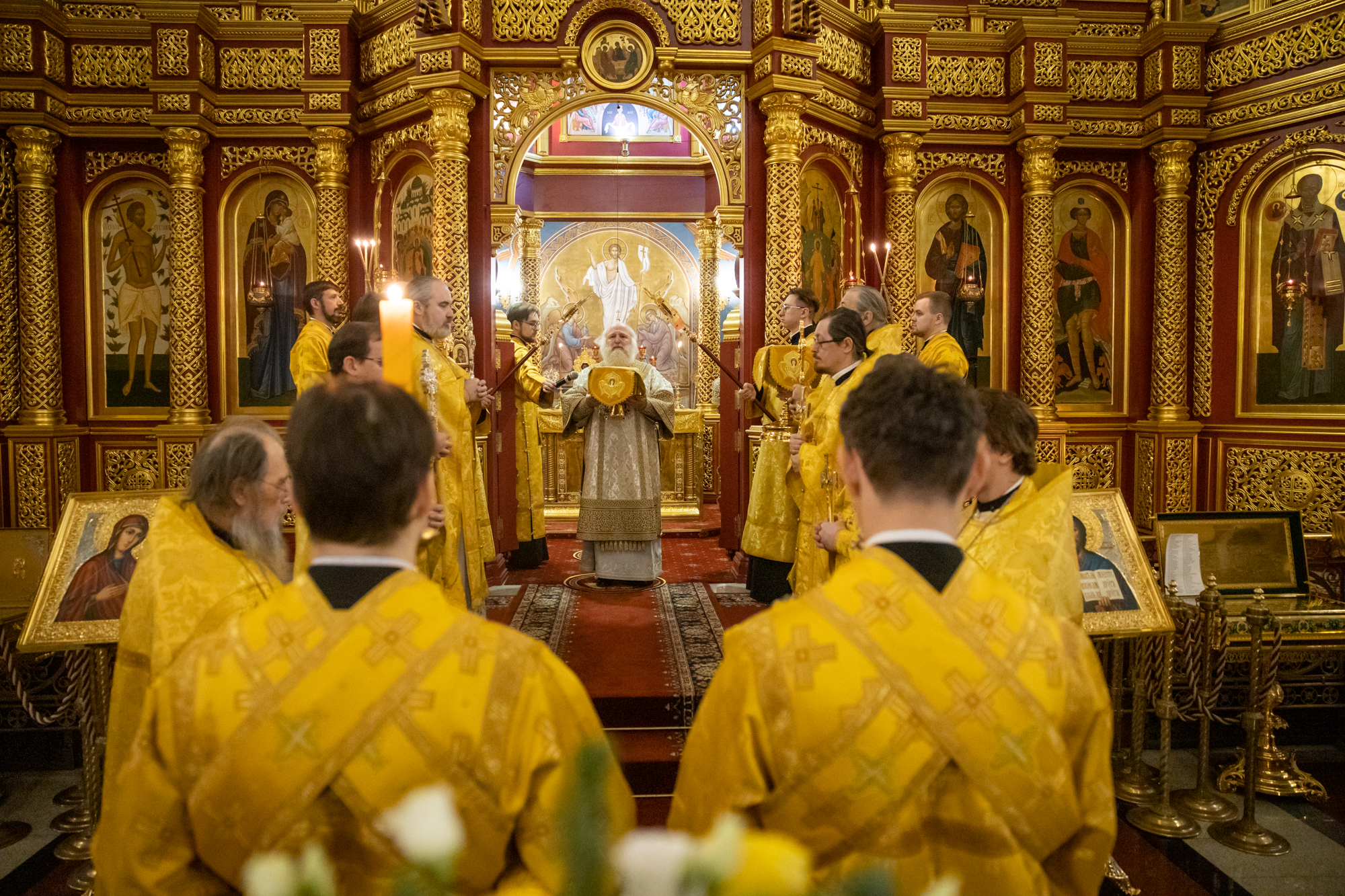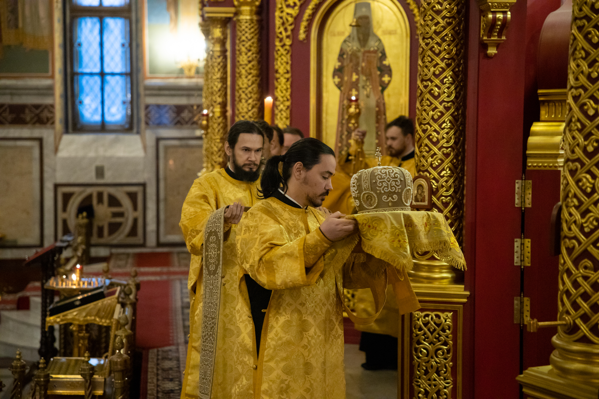 Его Высокопреосвященству сослужили: благочинный Нефтеюганского благочиния протоиерей Николай Матвийчук, благочинный Сургутского городского благочиния протоиерей Антоний Исаков, благочинный Нижневартовского городского благочиния протоиерей Сергий Шевченко, благочинный Сургутского районного благочиния протоиерей Димитрий Глухарев, благочинный Ханты-Мансийского благочиния иерей Димитрий Губанищев, благочинный Нижневартовского районного благочиния иерей Олег Гордеев, благочинный Лангепасского благочиния иерей Евгений Чебыкин, духовенство Ханты-Мансийский епархии. Диаконский чин возглавил диакон Даниил Матвеев.