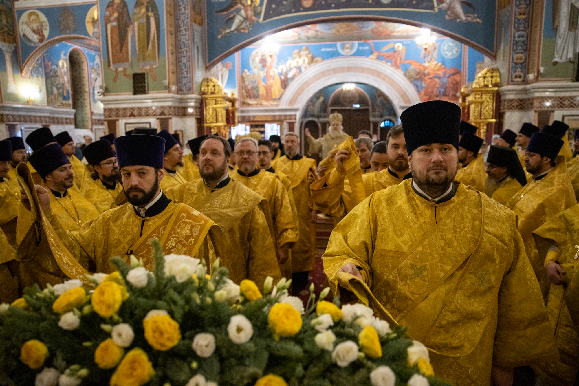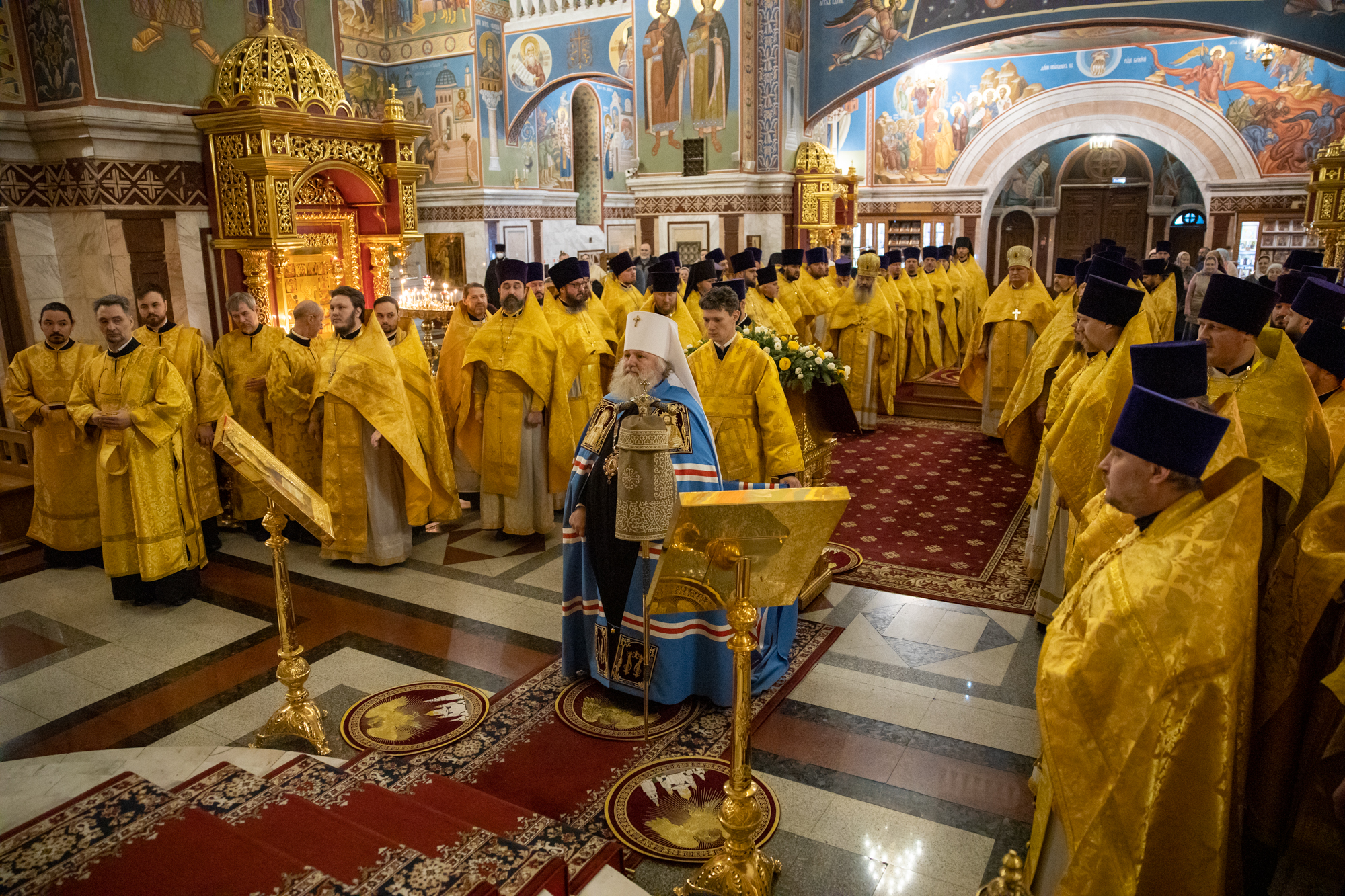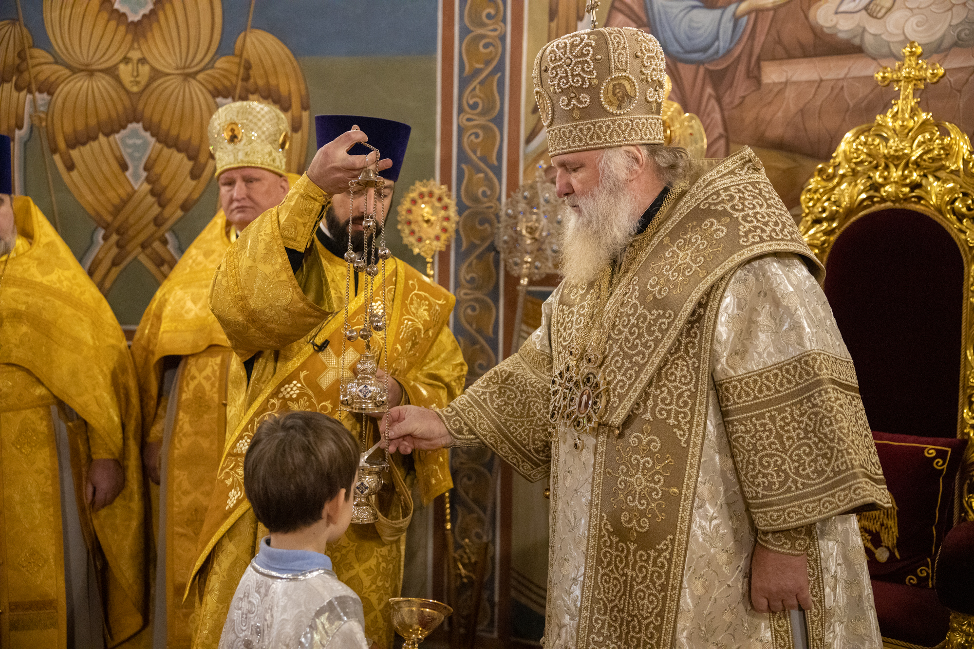 Его Высокопреосвященству сослужили: благочинный Нефтеюганского благочиния протоиерей Николай Матвийчук, благочинный Сургутского городского благочиния протоиерей Антоний Исаков, благочинный Нижневартовского городского благочиния протоиерей Сергий Шевченко, благочинный Сургутского районного благочиния протоиерей Димитрий Глухарев, благочинный Ханты-Мансийского благочиния иерей Димитрий Губанищев, благочинный Нижневартовского районного благочиния иерей Олег Гордеев, благочинный Лангепасского благочиния иерей Евгений Чебыкин, духовенство Ханты-Мансийский епархии. Диаконский чин возглавил диакон Даниил Матвеев.