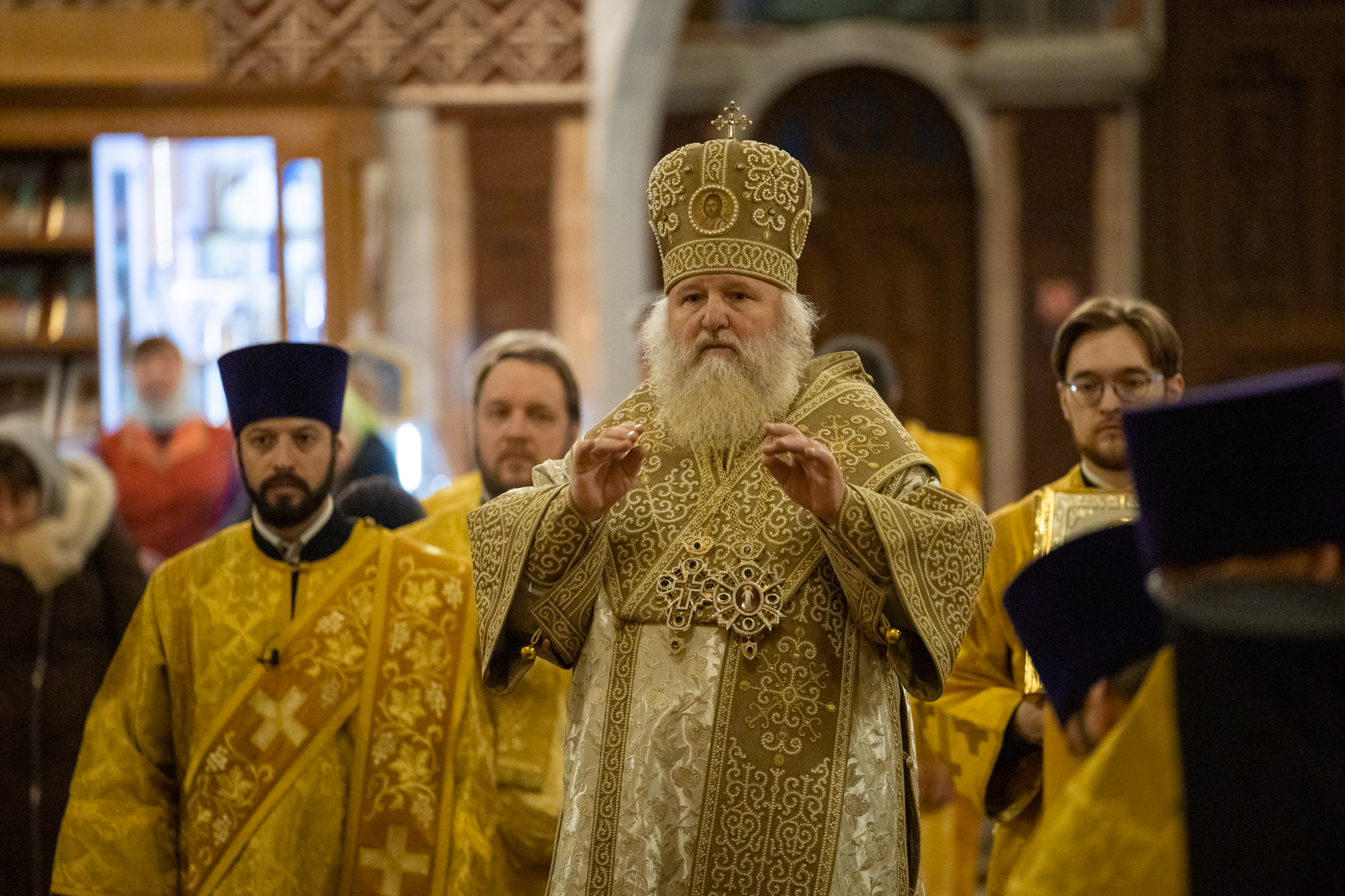 Сегодня мы собрались здесь для того, чтобы подвести итоги уходящего года. Съехалось большинство священнослужителей со всей нашей епархии, чтобы возблагодарить Бога за все благодеяния, которые мы с вами получали в этом году, и испросить благословения на дальнейшее наше служение. Слава Богу за все! Милостью Божией мы службы служили всегда, храмы строили, и людей приводили к Богу, и с детьми занимались и занимаемся. Благодатное время. И год, скажем, очень добрый был, несмотря на то, что, конечно же, идет война. Но и жизнь идет своим чередом с каждым человеком. Конечно же, как человек, составляющий тело и душу, имеет заботу и попечение одинаково и о физическом существовании, и о духовном.
