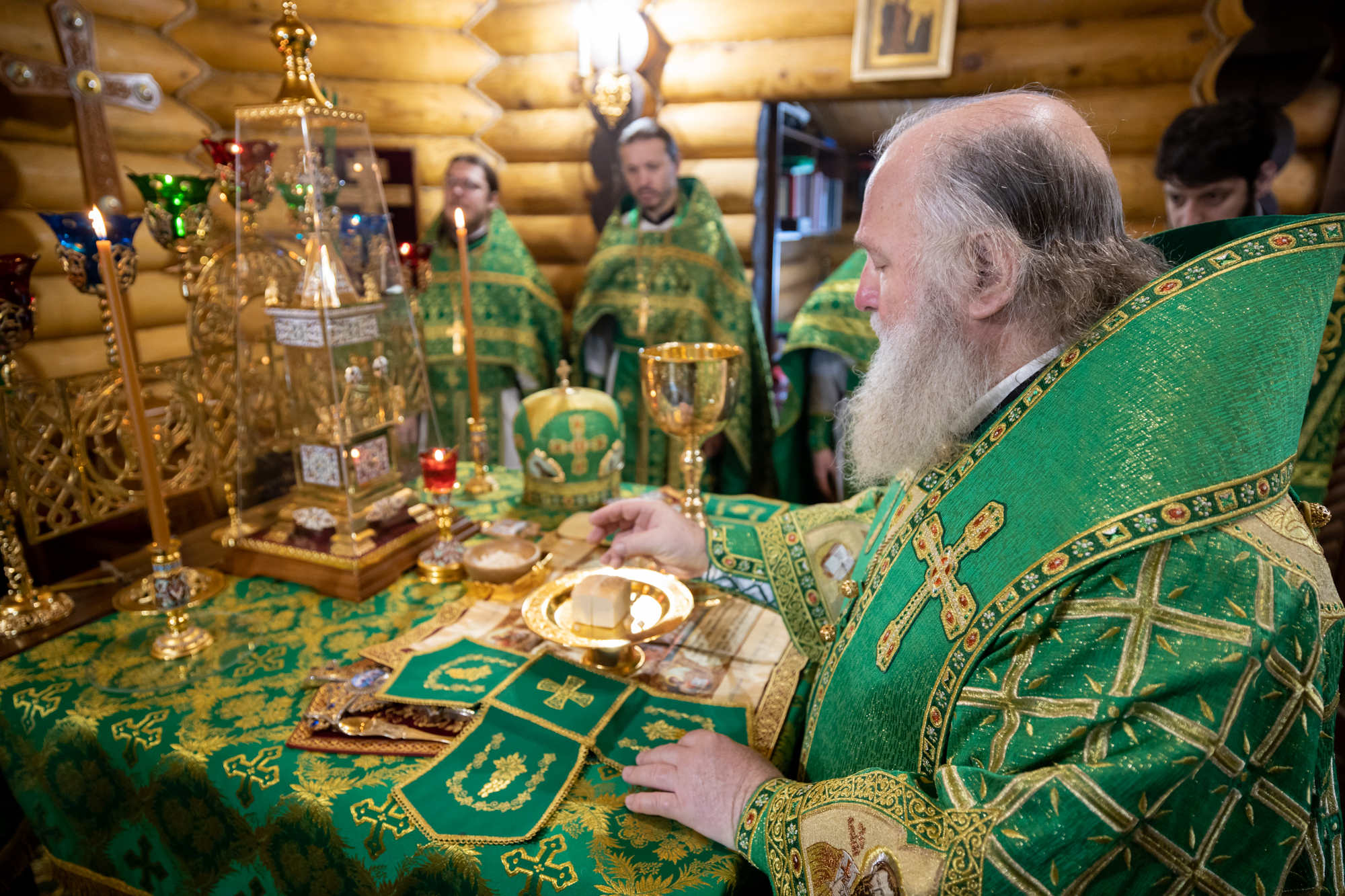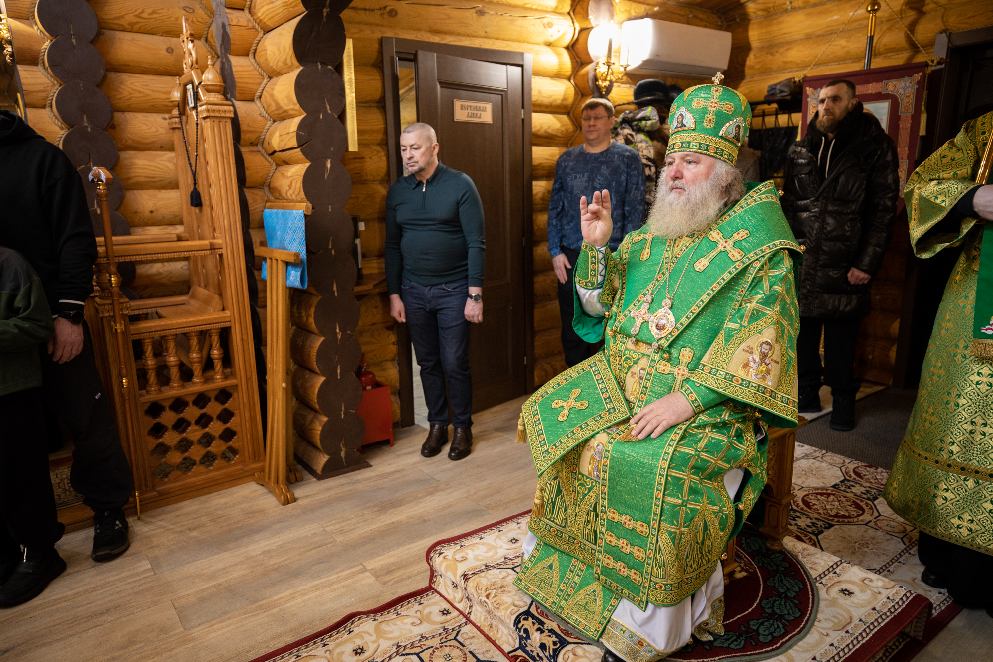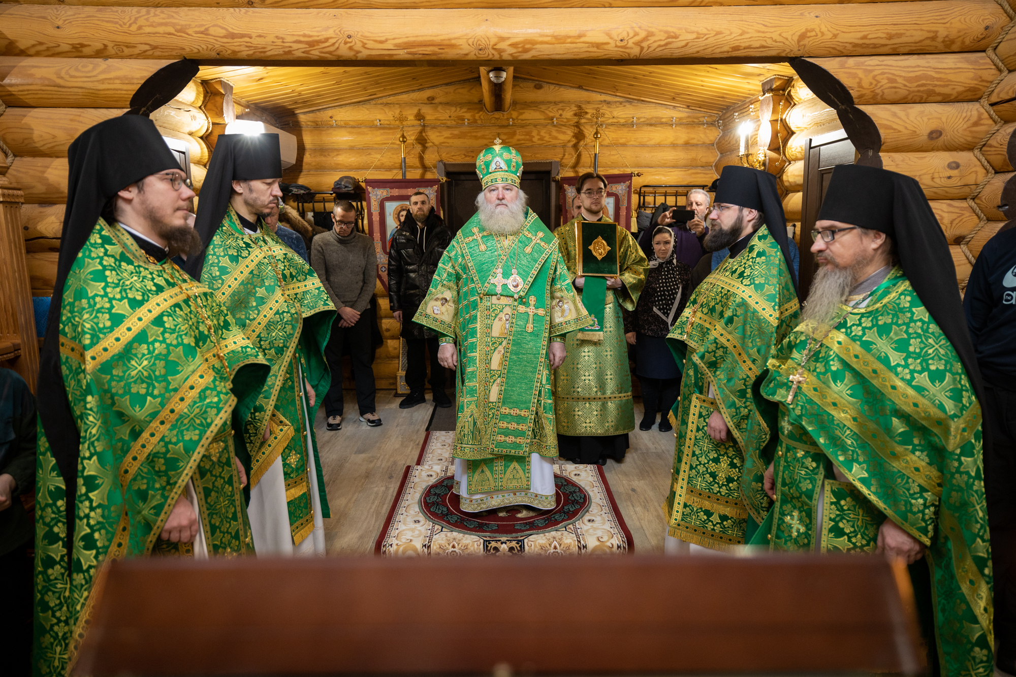 Его Высокопреосвященству сослужили: благочинный Ханты-Мансийского благочиния иерей Димитрий Губанищев, секретарь Ханты-Мансийской епархии игумен Антоний (Кирпичев), и.о. настоятеля монастыря иеромонах Иов (Бернацкий), братия обители в священном сане, диакон Даниил Матвеев.