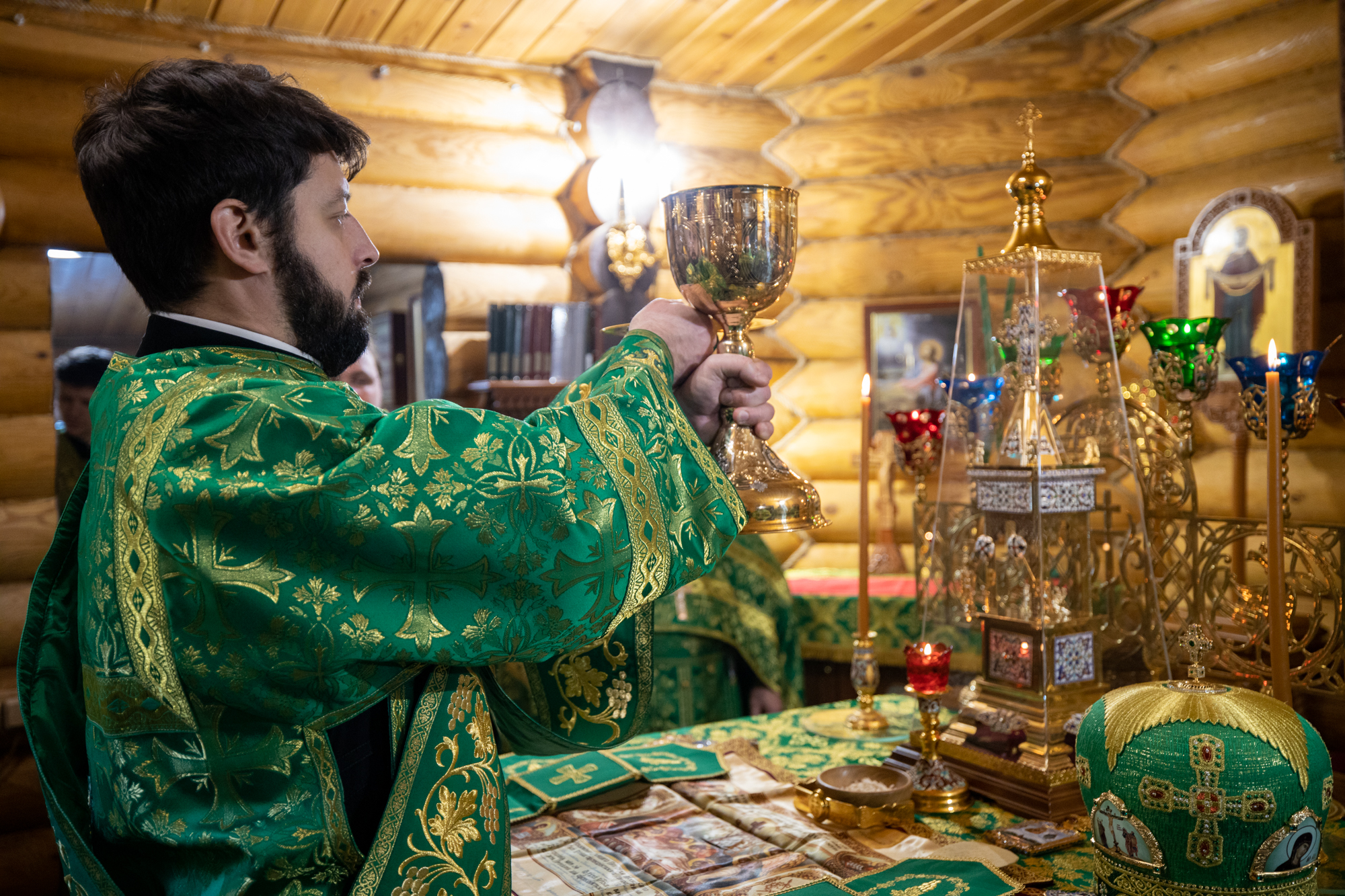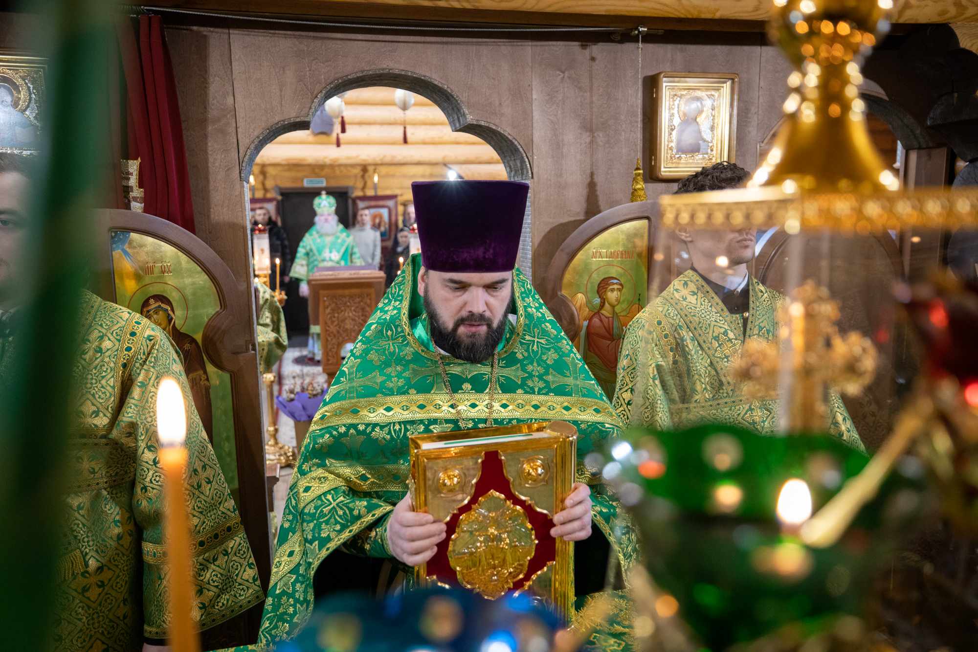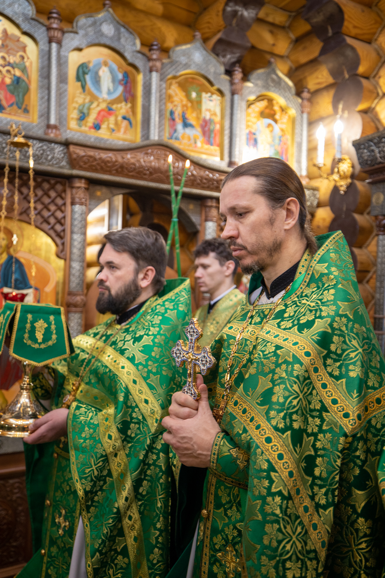 Его Высокопреосвященству сослужили: благочинный Ханты-Мансийского благочиния иерей Димитрий Губанищев, секретарь Ханты-Мансийской епархии игумен Антоний (Кирпичев), и.о. настоятеля монастыря иеромонах Иов (Бернацкий), братия обители в священном сане, диакон Даниил Матвеев.