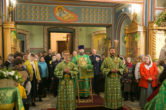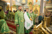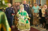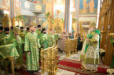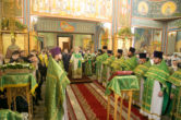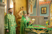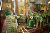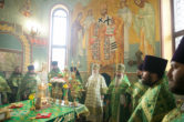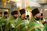 «Дорогие отцы, братья и сестры, позвольте всех от сердца, от души поздравить с престольным праздником, с праздником Духа Святаго! Эти дни особенные для всей нашей Церкви, для всех верующих во Христа, это День Рождения нашей Церкви, День 11- летия образования нашей епархии, в этот день, в праздник Пресвятой Троицы состоялась и моя архиерейская хиротония. В этом виден промысел Божий, так было Ему угодно, устрояя нашу жизнь. И то, что в один день празднуется День России и День Рождения Церкви говорит о том, что сегодня и государство, и Церковь — один живой организм, ибо по догматическому определению Церковь — общность людей, объединённых верой во Христа.