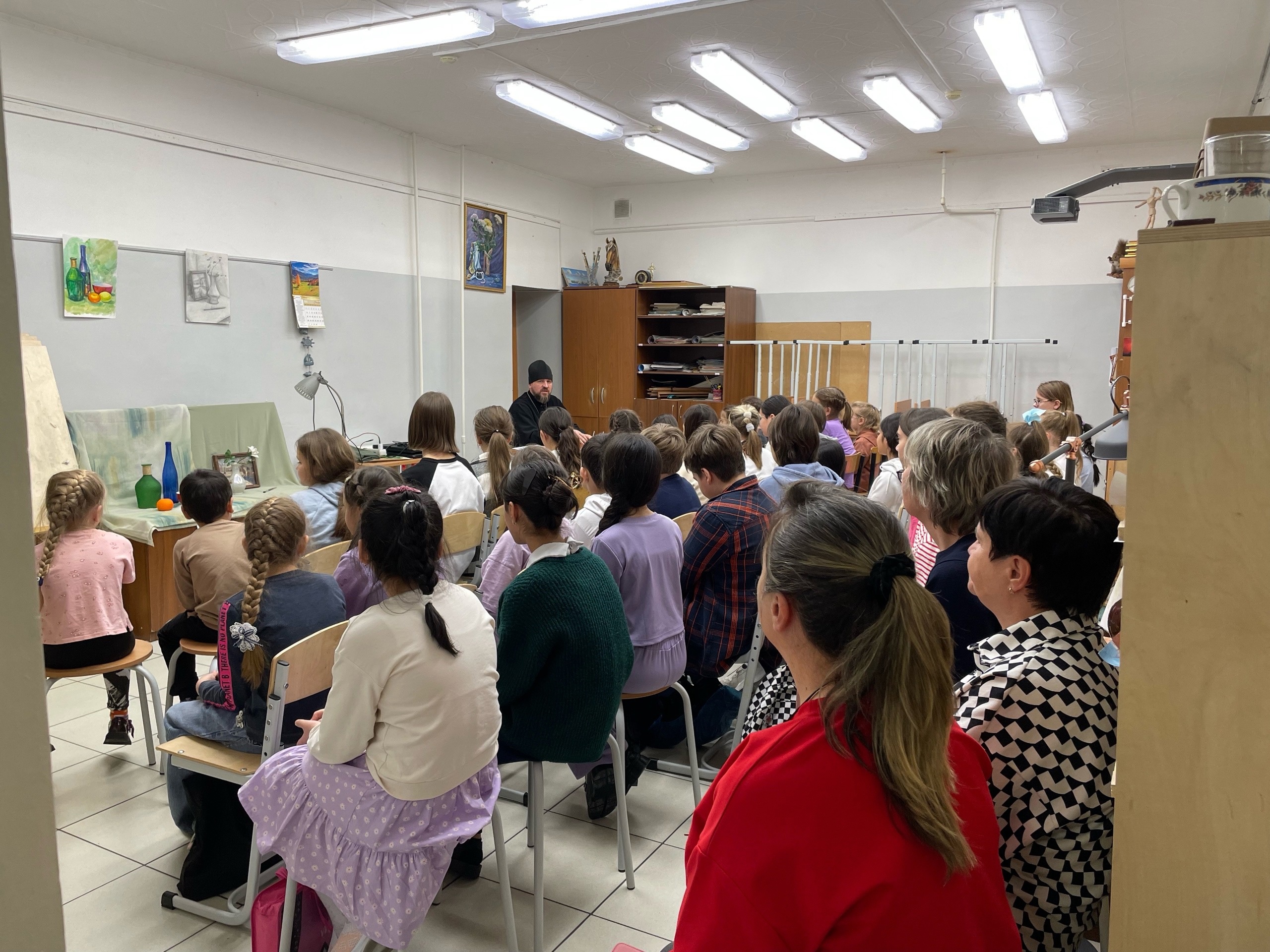 14 ноября в Детской Художественной школе города Радужный прошло мероприятие «Нет ненависти и вражде». Школу посетил настоятель Храма в честь святого праведного Иоанна Кронштадтского протоиерей Сергий Наздеркин для беседы с учащимися.