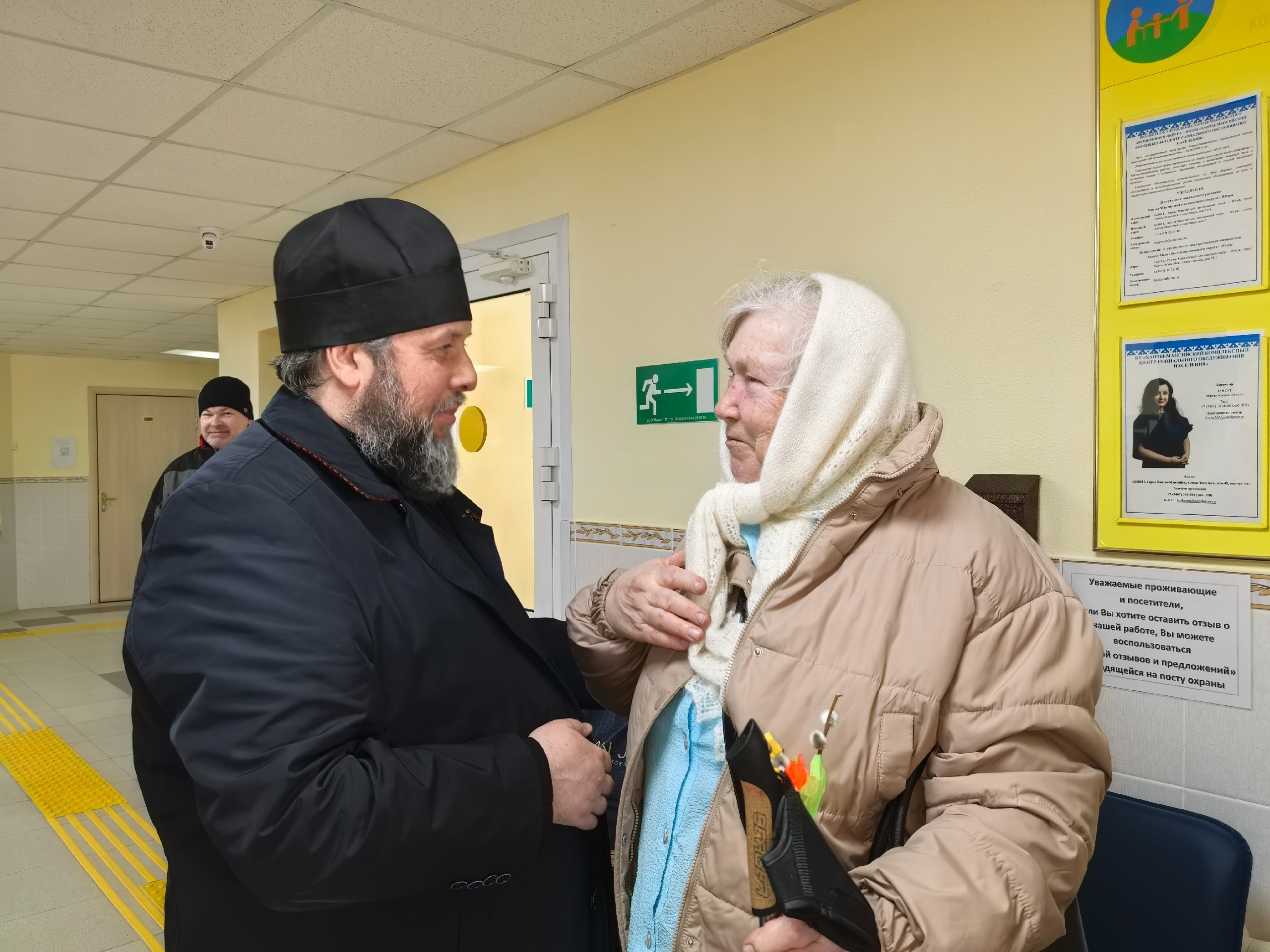 13 апреля 2025 года в праздник Входа Господня в Иерусалим по окончании богослужения настоятель храма в честь святого преподобного Евфимия Великого д. Шапша Ханты-Мансийского района иеромонах Роман (Киселев) и заместитель директора по воспитательной работе Средней общеобразовательной школы д. Шапша, руководитель приходской Воскресной школы С.Л. Иванова посетили Дом-интернат для инвалидов и престарелых «Уют» (Отделение-интернат малой вместимости для граждан пожилого возраста и инвалидов).